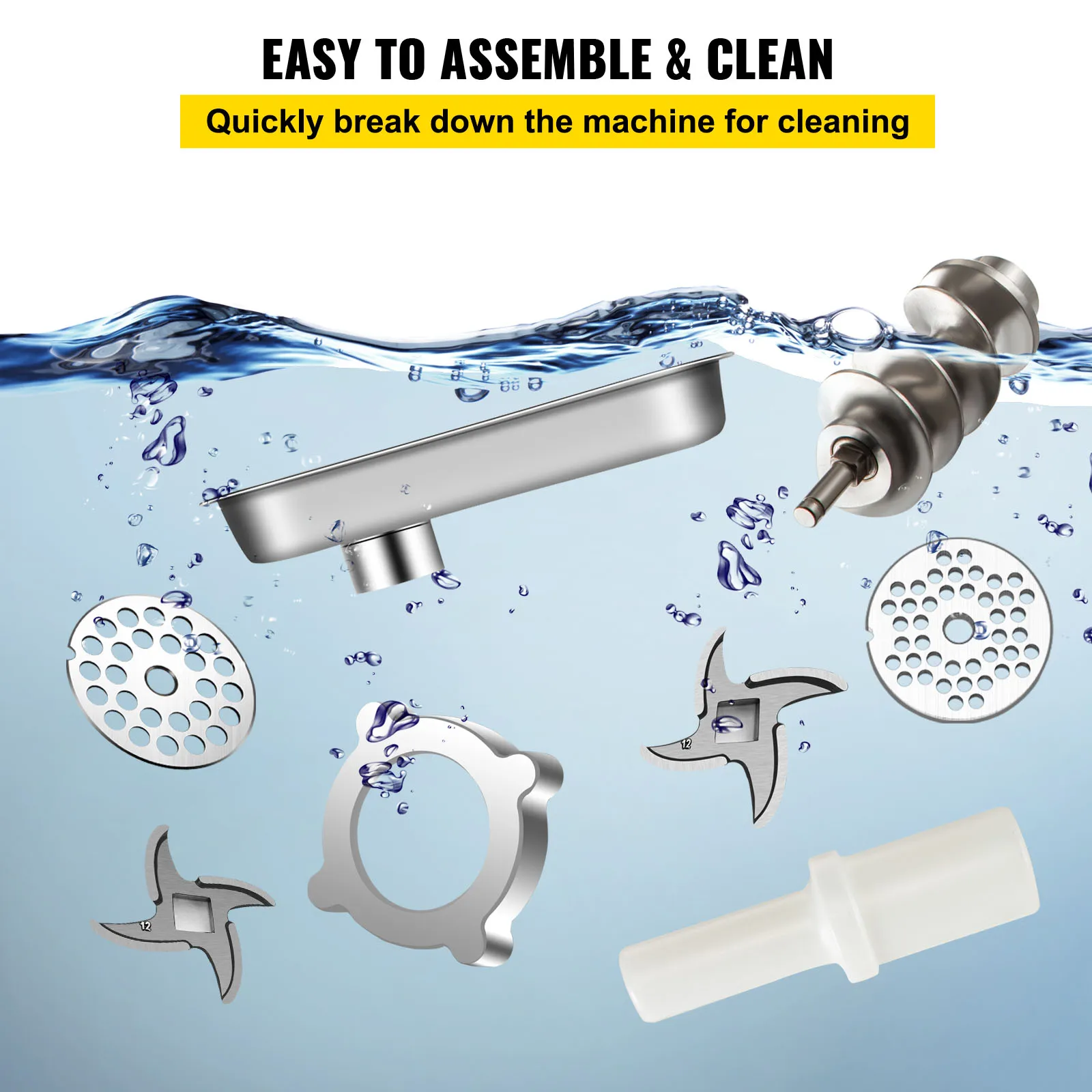 Premium Quality: Made of food-grade stainless steel, wear-proof, and rust-proof, including the outer casing, top tray, and blades, our commercial meat grinder provides you reliable using experience with its gears being able to cut the meat into various kinds you desire. Its polished surface and fine workmanship make it beautiful in appearance. And it is easy cleaning and stands up for a longer working period.